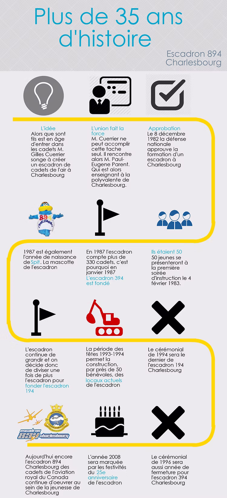 L’escadron 894 Charlesbourg des cadets de l’air est un organisme jeunesse qui oeuvre auprès de la communauté de Charlesbourg depuis plus de 40 ans.